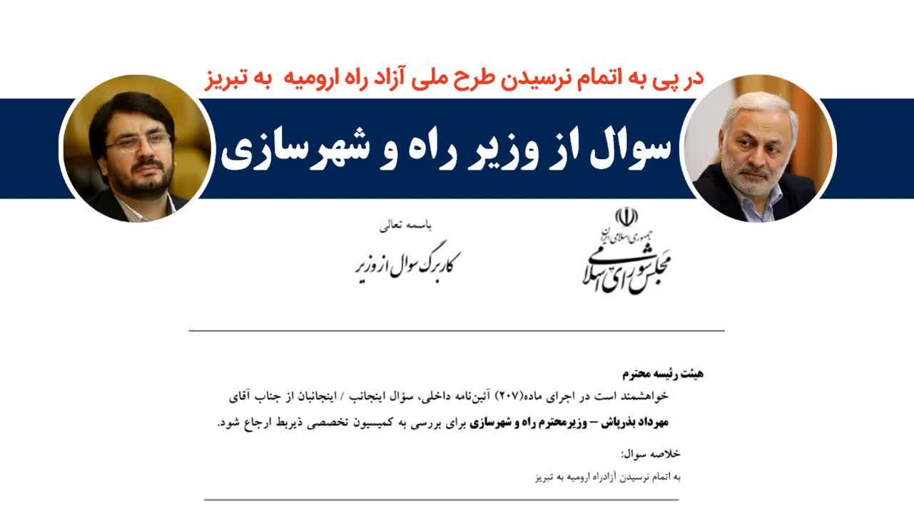 اینک سوال صریح اینجانب از وزیر محترم راه و شهرسازی این است که چرا بعد از ۱۲ سال آزاد راه ارومیه به تبریز به پایان نرسیده و نواقص فراوانی دارد.