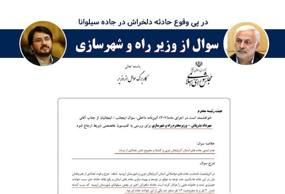 “به دلیل عدم ایمنی جاده های استان آذربایجان غربی و کشته و مجروح شدن تعدادی از مردم”